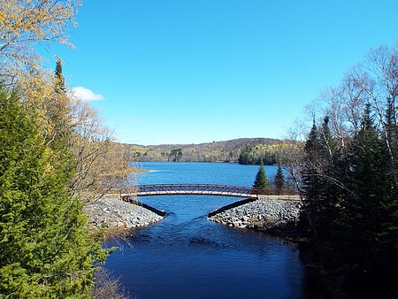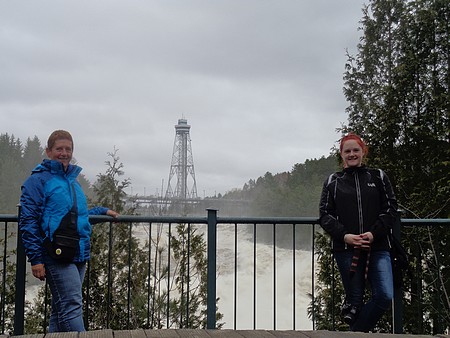Daarna maar doorgereden naar Shawinigan. Eerst wat gegeten bij A&W (wraps, frietjes en uienringen) en nog eens bij de Walmart gekeken voor een spijkerbroek maar de dames in Québec schijnen die niet te dragen want er hingen er maar een stuk of 20. Op de herenafdeling hingen/lagen zeker 4 rijen met jeans. We zijn nu in een Comfort Suites wat aan de Chûtes de Shawinigan ligt en daar zijn we nog wezen kijken en wandelen. Net als gisteren was ook deze waterval weer erg indrukwekkend. Wat een kracht en wat een kabaal.