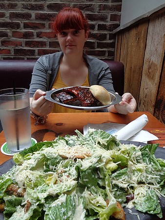 De wandeling eindigde in het Byward Market gebied. Een oud deel van de stad wat aan de andere kant van het Rideau Canal ligt en nu een heel gezellig gebied is met veel winkels en restaurantjes. Op aanraden van Kara zijn we bij Smoque Shack gaan eten. Emma had de ribjes en ik een cesar salad (om te delen). De porties hier zijn gelijk aan die in de VS, dus enorm maar het was erg lekker!!!