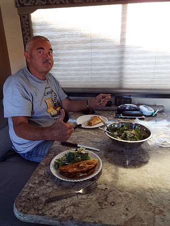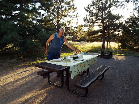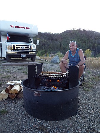 huis en liggen in de "vakantiekast" of in onze keuken. Wat we niet gebruiken in de camper is de airco ("suck it up and deal with it" zeggen wij, thuis is het ook warm in de zomer en hebben we ook geen airco) en die kleredingen maken een pokkelawaai! En wij hebben last van andermans airco-kabaal. De luifel wordt bij ons ook nooit gebruikt, in 2017 ook al niet. We zitten graag in het zonnetje en als dat te warm is dan is er altijd wel schaduw te vinden, de camper geeft schaduw als er geen bomen zijn. De douche, nee, geef onze portie maar aan Fikkie. Je kunt je kont er niet in keren en de douchebak is een ideale opbergruimte! De toilettassen staan er en de grote boodschappentas met vuile was, de bezem. We gebruikten de wastafel voor tandenpoetsen en zo, de wc vooral 's nachts en in geval van nood. Douchen doen wij alleen op een camping en daar gebruiken we ook de wc, behalve dus 's nachts en in geval van nood. Wij hebben geen enkel probleem met vault of pit toilets, ze zijn eigenlijk altijd schoon. De enige echt smerige douches en wc's die we hebben gehad was op een RV park..... Met een camper duurt alles langer. Het optrekken, rijden, stoppen, parkeren, boodschappen (moeten veilig worden opgeborgen), alles, alles, alles duurt langer. Wij wisten dat nu. Ook het parkeren kost meer tijd omdat je een geschikte plek moet vinden. Maar ook uit- en instappen, je moet meer deuren open en dichtmaken. En je stapt sneller in en uit een auto dan bij een camper. Campings Onze ideale campingplek