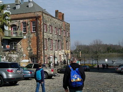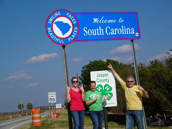 We hadden vanochtend gezien dat er morgen en overmorgen heel veel regen en kou (mogelijk met ijs) aankomt en dan ook in Charleston. Daarom hebben we de plannen gewijzigd. Om nou in Charleston in de koude regen te lopen, dat voegt niks toe en doet Charleston vast geen eer aan. Dus, we gaan morgen weer naar het zuiden. Maar dat betekent ook dat we niet in South Carolina komen. Mooi wel dus! We zijn de grote brug in Savannah over gegaan en aan de overkant is South Carolina. Ha, we zijn er geweest en we hebben bewijs ook!