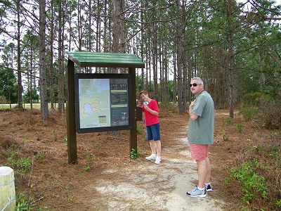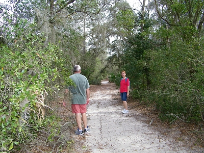 In Micanopy (dat viel vies tegen) hebben we een BLT gegeten op een terras en de vieze soep hebben we laten staan, alweer yuck. We waren vlak daarvoor langs Paynes Prairie Preserve State Park. Hier zijn we na de lunch naartoe gegaan, prachtige weg, en we hebben hier een trail, onze eerste deze vakantie, gelopen, de Wacahoota Trail. We vonden het erg mooi, het rook lekker, was heel stil en de diversiteit aan vegetatie blijft ons verbazen.