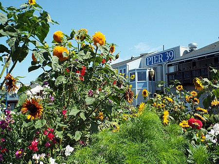 Fisherman's Wharf hebben we op een bankje zitten lunchen, een broodje
