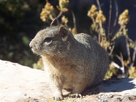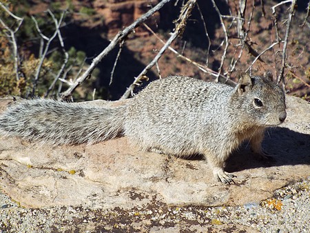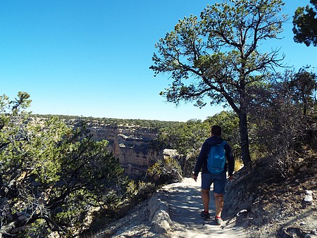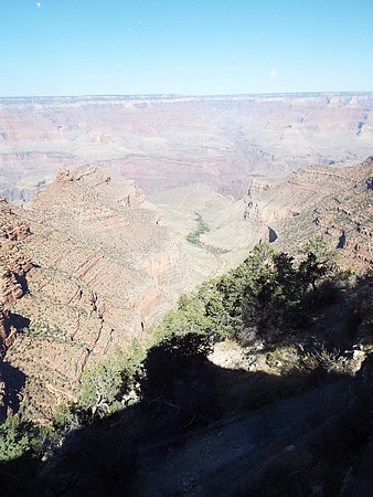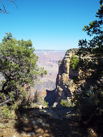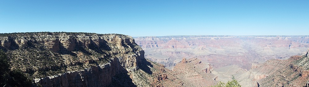 We hebben de shuttle terug gepakt tot Mojave Point. Hier hebben we even wat gedronken en een broodje gegeten. We wilden langs de rim lopen naar Hopi Point en dan Powel Point. We begonnen vol goede moed over het onverharde pad. Dit pad liep vlak langs de afgrond en met mijn hoogtevrees ging dat niet goed. Jacky bleek ook de schrik er goed in te hebben na het ongeluk in Mesa Verde afgelopen week, dus we zijn snel naar de weg gelopen en over de weg terug naar de shuttle stop.