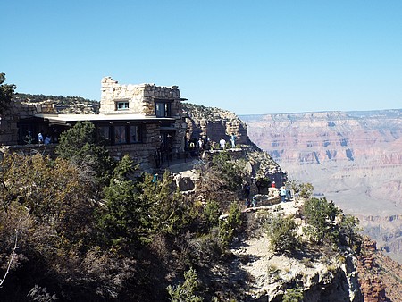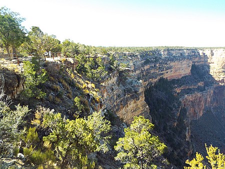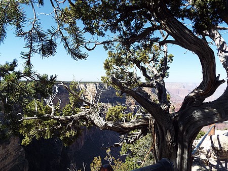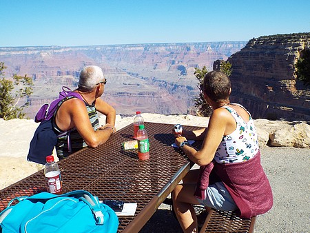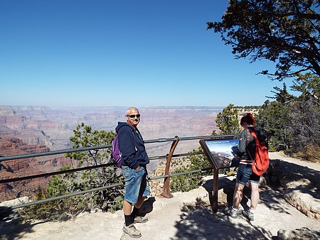 We besloten toen maar gewoon terug te gaan naar de Village waar we langs de rim hebben gelopen, veilig achter muurtjes en hekken. In Kolb Center hebben we een boek gekocht met alle dodelijke ongelukken in de Grand Canyon. De man in het winkeltje vertelde ons dat er dit jaar tot nu toe al 13 mensen zijn doodgebleven. Mensen die niet op het pad blijven, op rotsen gaan staan aan de afgrond etc., vaak voor een selfie..... Tja, common sense zei de man, en dat ontbreekt nogal eens.