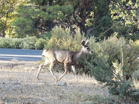 Nadat we ons hadden geïnstalleerd zijn we naar de Market Plaza gegaan, even e-mails gecheckt en een ijsje gekocht. In de General Store nog melk en een toetje gekocht en toen weer teruggelopen. En weer stonden er twee Elk te drinken, moeder en kind, en ook een moeder en kind Mule Deer. We hebben zelf burgers gemaakt en op de grill gedaan, salade, erpelsalade en coleslaw erbij gemaakt. Het is hier rond half zeven al donker. En het koelde weer af. De rest van avond hebben we binnen gezeten. Wildlife: een