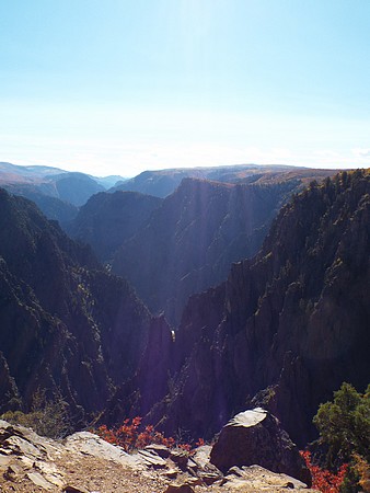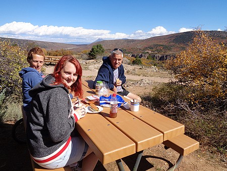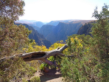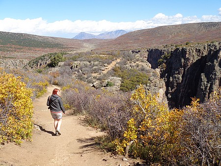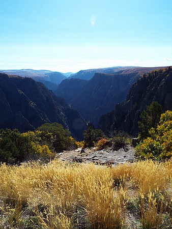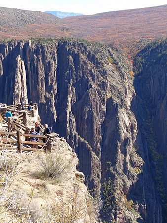 We zijn naar de volgende punten gegaan: Tomichi Point, Gunnison Point (Visitor Center), Pulpit Rock (hier hebben we gepicknickt met een bende chipmunks), Devils Lookout, Chasm View, Painted Wall View en Dragon Point. Elk punt was even indrukwekkend. En het was heel erg prettig dat het eens geen rode maar zwarte rotsen zijn. De weg ernaar toe is ook erg mooi. Hier zit je ook weer behoorlijk hoog en dat voel je aan de temperatuur, maar vandaag zagen we ook veel herfstkleuren.