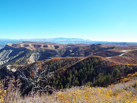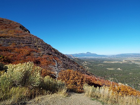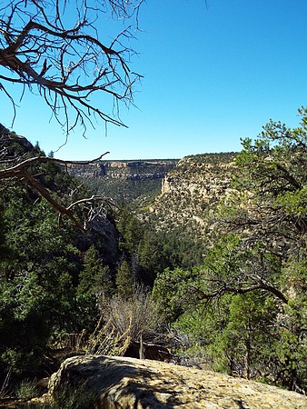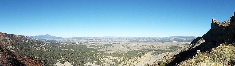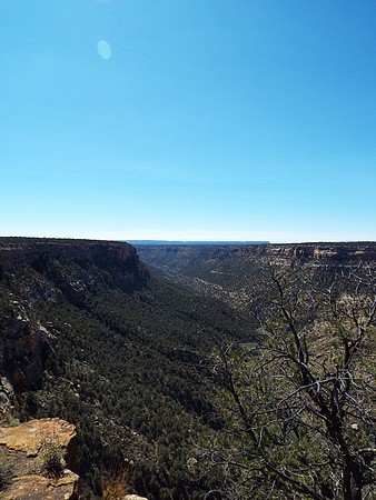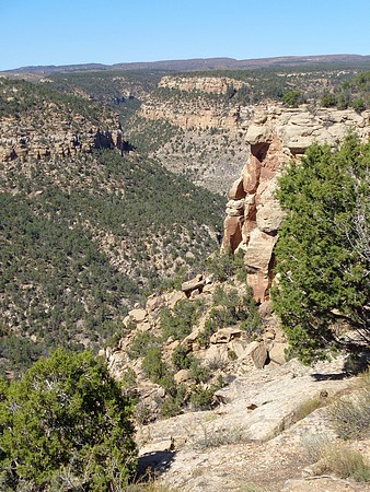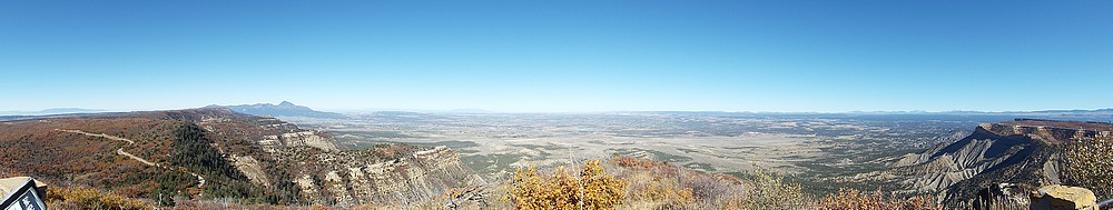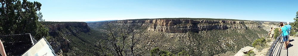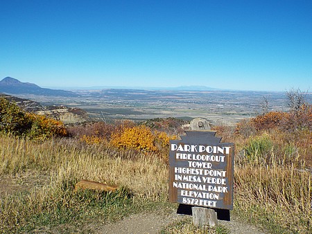 En dan ga je alwéér de berg op, ik doe niks anders deze vakantie. We zijn gestopt bij Montezuma Valley Overlook vanwaar we de hele vallei en omliggende bergen konden zien. De volgende stop was bij Park Point Overlook, het hoogste punt in Mesa Verder NP. Hier was het een klein stukje naar twee uitkijkpunten, je ziet zelfs de Manti La Sal Mountains (110 mijl verder) en ook Ship Rock is prima te zien.