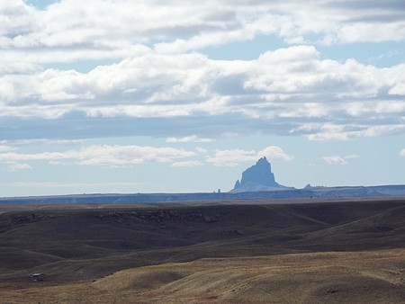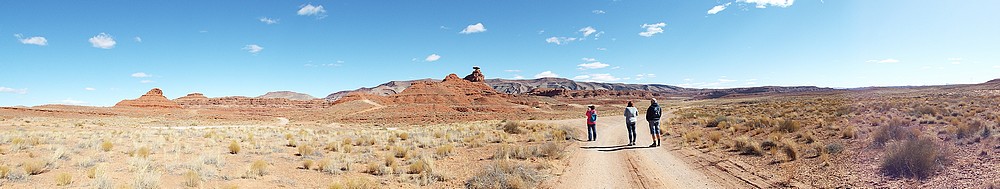 Bij de Mexican Hat Rock Formation hebben we de wagen ook aan de kant van de weg geparkeerd en zijn we naar de rots toe gelopen, even wat beweging. We zagen iemand net onder de rand van de Hat lopen, pff, een behoorlijke klim denk ik zo.