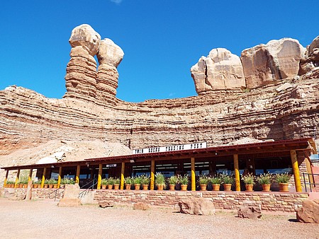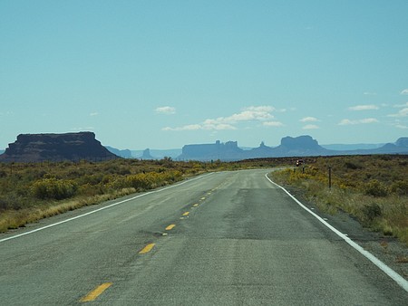 Toen reden we een stukje terug naar Colorado om onze route te vervolgen naar Bluff. We hadden ons ingesteld op een hele saaie rit maar het bleek heel erg mee te vallen. In Bluff zijn we gestopt bij de Twin Rocks Trading Post. We hebben hier ook nog gekletst met een hele aardige Navajo vrouw en we hebben een kalender gekocht van een kunstenares uit Moab. Die prenten kunnen we thuis mooi inlijsten.